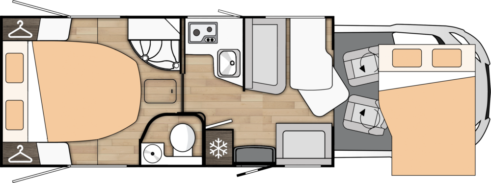 - Asientos conductor y pasajero reclinables, giratorios, regulables en altura y con 2 reposabrazos